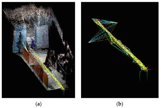 Figure 6a,b show the mapping information and navigation trajectory generated using an RGB-D camera and aerial robot. Table 3 lists the location errors and the computing speed based on the robot’s navigation number within the experimental environment.