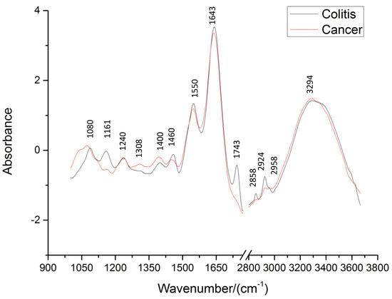 - Li, X.; Li, Q.B.; Zhang, G.J.; Xu, Y.Z.; Sun, X.J.; Shi, J.S.; Zhang, Y.F.; Wu, J.G. Identification of colitis and cancer in colon biopsies by Fourier transform infrared spectroscopy and Chemometrics. Sci. World J. 2012, 2012, 936149. [Google Scholar] [CrossRef] [PubMed]