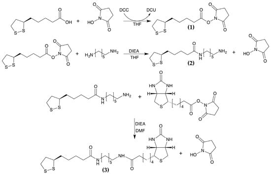 2.3. Synthesis of Biotinylated Linker: N-Dithiooctanoylamidohexyl-5-Biotinylpentanamide (LHB)
