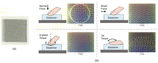 - Kamiyama, K.; Vlack, K.; Mizota, T.; Kajimoto, H.; Kawakami, K.; Tachi, S. Vision-based sensor for real-time measuring of surface traction fields. IEEE Comput. Graph. Appl. 2005, 25, 68–75. [Google Scholar] [CrossRef] [PubMed]