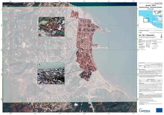 - Copernicus—The European Earth Observation Programme EMSR185: Tropical cyclone in Haiti–Jeremie. Available online: http://emergency.copernicus.eu/mapping/list-of-components/EMSR185/ALL/EMSR185_11JEREMIE (accessed on 19 September 2017).