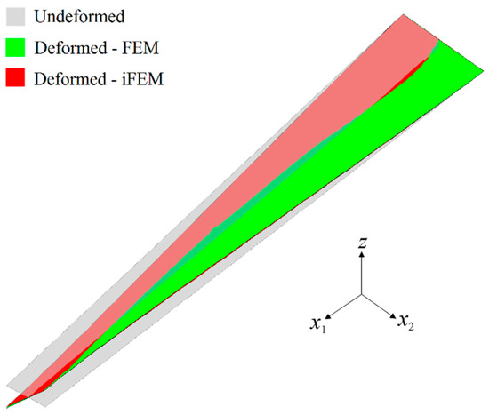 Three-dimensional shape sensing for bending scenario: comparison between the high-fidelity FEM analysis and iFEM analysis of VS configuration.