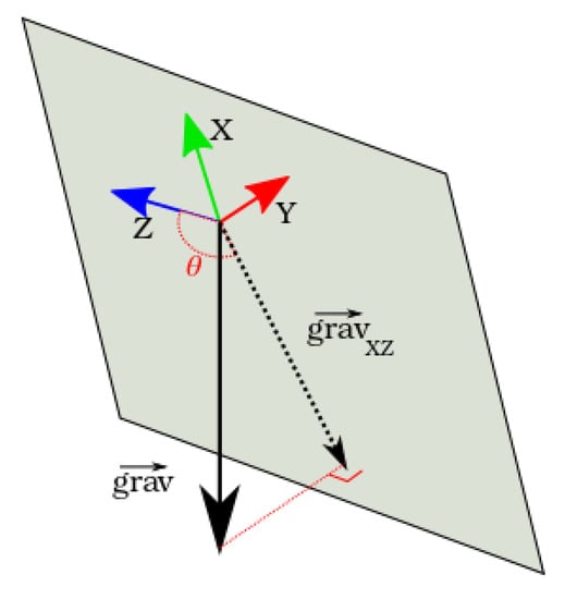 - the gravity vector projection angle , which is the desired measurement translating the system orientation in the 2D plane; and