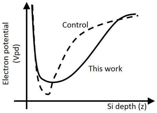 Photodiode potential profile. Dashed line is based on control pixel, and solid line is based on the pixel in this experiment.
