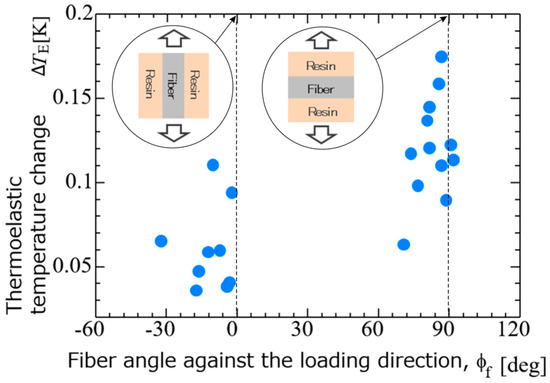 - It was found from the relationship between the thermoelastic temperature change ∆TE and the fiber orientation angle φf that ∆TE in the area where φf = 90° takes higher value compared with that in the area where φf = 0°.