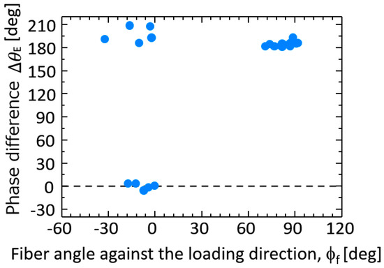- It was also found from the relationship between the fiber orientation angle φf and the phase difference ∆θE that ∆θE takes 180° in the area where φf = 90°. On the other hand, ∆θE takes 0° where φf = 0°. This is due to the negative thermoelastic constant of carbon fibers and the load sharing condition between resin and carbon fibers.