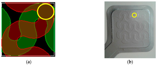 The sensor has been tested in three different loading conditions: (A) Distributed load; (B) 9 Tips load; and (C) Wave-shaped load. As shown in Figure 1a, the sensor is composed of 9 sensory elements organized in a 3 × 3 matrix with hollow wave-shaped active regions and raised wave-shaped inactive ones. First of all, the load has been applied on the whole sensor surface (i.e., “Distributed load” loading condition), in order to test the sensor in a condition comparable with a finger applying a force on the sensor. Inspecting the internal structure of each sensing element (Figure 4a), an area can be observed, where two sensing elements are superimposed (it is encircled in yellow in Figure 4a). This area represents the most active region of the sensor. Therefore, the load has been applied on the 9 most active regions of the 9 sensory elements of the sensor by means of “Tips load”. Finally, in order to apply the load on the whole wave-shaped active region, a “Wave-shaped load” loading condition has been also tested.