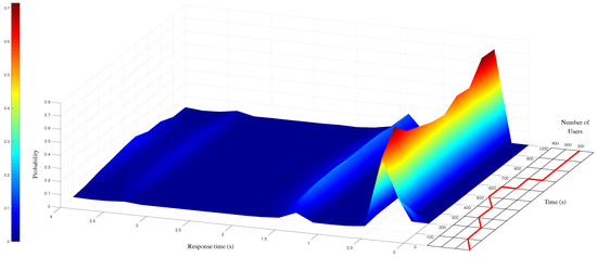 - Finally, when the number of users is reduced back to 300, the server progressively adapts itself and the probability of short response time (≈0.5 s) increases to more than of the values.