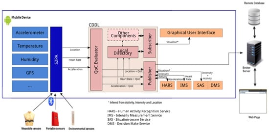 Mobile Hub (M-Hub)/Context Data Distribution Layer (CDDL) is a new middleware for context data management (acquisition, processing, and distribution) with broad support for the development of context-aware IoT/IoMT applications that have QoC (QoI and QoS) requirements. This middleware was developed by the Laboratory of Intelligent Distributed Systems (LSDi) of the Federal University of Maranhão (UFMA), in partnership with the Laboratory for Advanced Collaboration (LAC) of the Pontifical Catholic University of Rio de Janeiro (PUC-Rio). The proposed solution combines a mobile gateway (the Mobile Hub [4,57]) for the acquisition of raw data from heterogeneous physical sensors with a CDDL. This layer is also responsible for registering and discovering the available context services, as well as for provisioning and monitoring context information and for ensuring the context data distribution service quality.