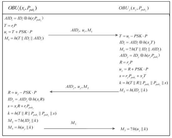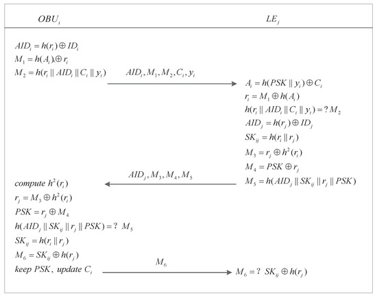 A mistrusted OBU becomes trusted once it has been authenticated successfully and has obtained . Then, it can play the role of an LE to authenticate other mistrusted OBUs. The corresponding trust-extended authentication procedure is the same as the general authentication procedure.