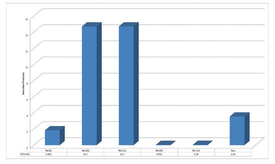 As seen in Table 5 and Figure 6, the execution time of our scheme is less than those of some other schemes [11,12]. Although the execution times of Chuang–Lee’s scheme and Kumari’s scheme are less than that of our scheme, their schemes fail to resist internal attack because the participants’aliases depend only on a random number that is hidden by as shown in Table 6. Therefore, a trusted vehicle can reveal a participant’s real identity because it holds . Meanwhile, because Porambage’s scheme uses certificates for authentication, the unlinkability of messages cannot be preserved, and a user’s anonymity can be violated. Therefore, our proposed scheme is a preferable solution for secure communication in vehicle sensor networks compared with the existing similar schemes presented in [6,11,12,15,16].