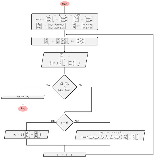 The goal of the IMU initialization procedure, presented in Figure 11, is to calculate the data () correction factors matrix () for each IMU individually.