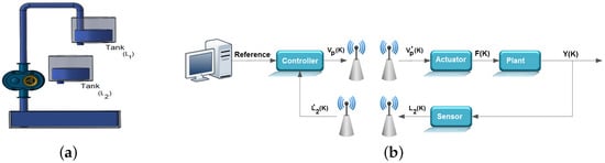 (a) System coupled tanks; (b) diagram of the control system adopted in this work.