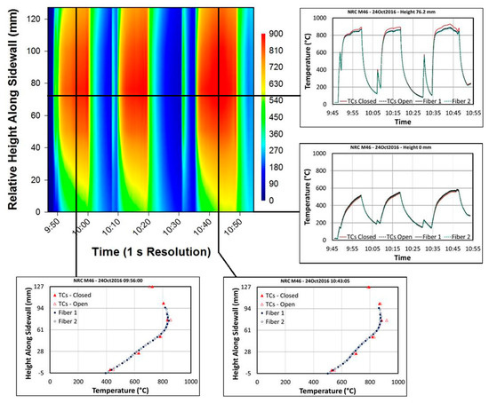 Comparison examples of sidewall temperature measurements at various points in time and space.
