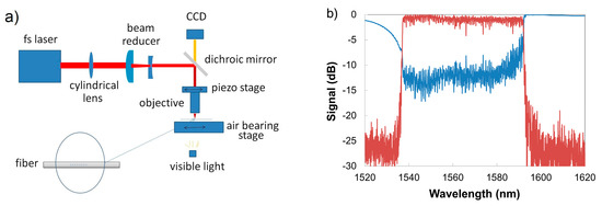 - Antipov, S.; Ams, M.; Williams, R.J.; Magi, E.; Withford, M.J.; Fuerbach, A. Direct infrared femtosecond laser inscription of chirped fiber Bragg gratings. Opt. Express 2016, 24, 30–40. [Google Scholar] [CrossRef] [PubMed]