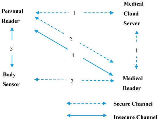 When the personal reader wants to connect to the medical reader for some services, both parties must authenticate each other. In addition, when the personal reader requires related data from the body sensor, they must also authenticate each other. The authentication and communication phase of the proposed scheme is shown in Figure 9 and Figure 10.