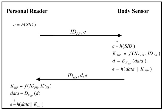 - When the personal reader requires related health data from the body sensor, it calculates:and sends to the body sensor.