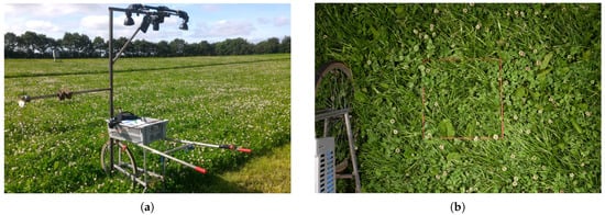 The following are available online at www.mdpi.com/1424-8220/17/12/2930/s1, Figure 1: Example of the image analysis on a real image. Each element in the image is analyzed and classified as either grass (blue), clover (red), weeds (yellow) or unidentified (black overlay). (a) Example input image. (b) Automatically analyzed image.