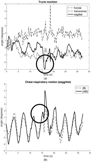 Figure 6 shows an experiment involved abnormal breathing (a single cough) with no trunk motion.