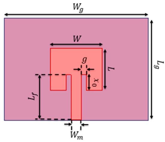 where is the free space wavelength at the resonance frequency. The thickness (d) should be much smaller than for impedance matching between sensor and transmission line []. In this paper, is 100 mm at the maximum resonance frequency of the designed sensor. Additionally, the designed sensor thickness (d) is 5.2 mm, which is very thin compared to . The relative permittivity () of the proposed sensor can be determined by the following [,,,]: