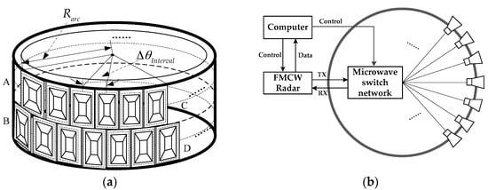 Ground-based arc array synthetic aperture radar (GB-AA-SAR) system: (a) Arc antenna array; (b) Configuration of GB-AA-SAR system.
