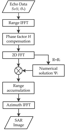 - Repeat Steps 4 to 5 for all of the available Ri, which can be rapidly implemented by parallel processing, then perform azimuth IFFT to the accumulated result SR, kθ to accomplish the focus procedure in the azimuth direction.