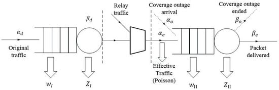 A preemptive-resume priority queueing model is used to describe the queueing behavior in the deliver phase. This model assumes two classes of independent traffic. The first class represents the coverage outage process, while the second class represents the effective traffic. The first class has absolute priority over the second class. This means that once a coverage outage occurs, the current transmission is stopped and should wait till the next coverage opportunity.