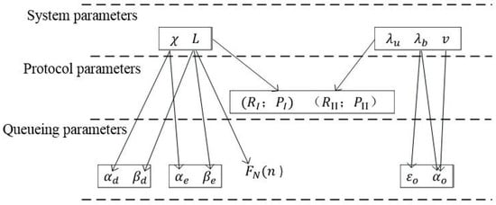 Relationships among system parameters, protocol parameters and queueing parameters.