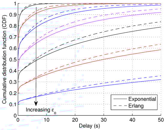 We have so far assumed a general distribution for the outage duration . This distribution affects the solution of Equation (31). We will subsequently discuss two special distributions for .