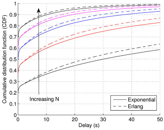 This subsection aims to obtain the exact distribution of the four delay parameters , , and , from which the total delay can be obtained as:
