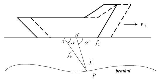 The vehicle’s velocity can be measured by the Doppler Velocity Log (DVL), which is designed by the Doppler Effect. The principle of DVL is shown in Figure 4.