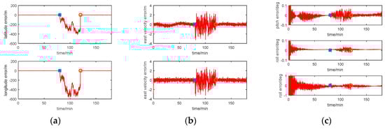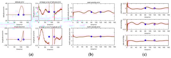 The parameters setting are same with that of Method 2. Before the navigation, the process of INS coarse alignment is carried out to estimate the body’s initial attitude [55,56].