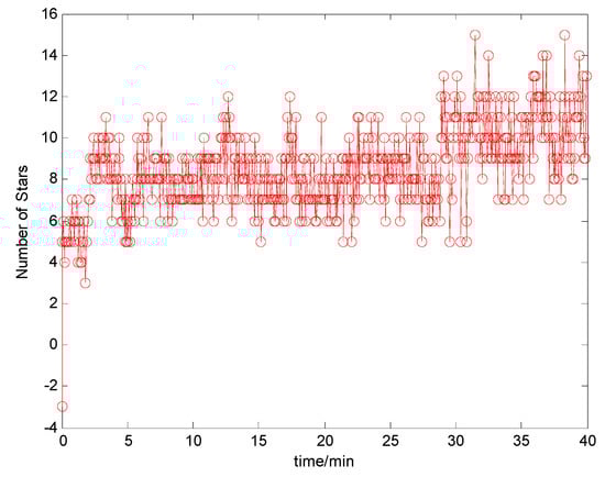 From Figure 3, due to the clouds and other external factors, the number of available stars decreases gradually and the star sensor positioning errors increase with it. Therefore, the positioning accuracy of the star sensor will decrease when the number of stars in the FOV is decreased under poor weather conditions.