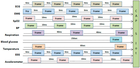 Patient monitoring using biomedical sensors is a popular body area sensor network (WBASN) application that can to continuously monitor chronic and non-chronic diseases. WBASNs usually work in a star topology under the central control of a coordinator. A patient monitoring system is comprised of different sensors which measure physiological parameters including electrocardiography (ECG), electroencephalography (EEG), electromyography (EMG), accelerometry, gyroscopy, pulse oximeters, blood pressure, temperature, barometry and heart rate monitoring, etc. The sensors periodically collect data from the body and send it to a monitoring station through a coordinator node [1]. The periodic data from the sensors have different characteristics in the context of delivery delay and sensing rate. There are two basic reasons for the different characteristics of periodic data collected from various sensors; the first is collection from diverse physiological sources like blood pressure, ECG and temperature, etc., the second is the default behavior of the sensor.