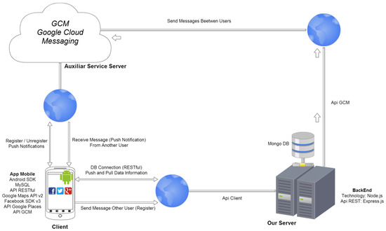 The general architecture used in the proposed application model is known as client–server (see Figure 1). Its different elements are the following: