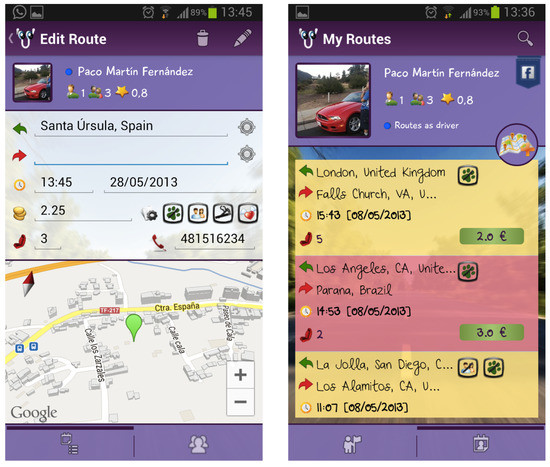 The proposed design has been embodied in an Android application that is already published in the Google Play Store under the name ’Carpoolap’ (see Figure 4).