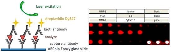 - Sauer, U.; Domnanich, P.; Preininger, C. Protein chip for the parallel quantification of high and low abundant biomarkers for sepsis. Anal. Biochem. 2011, 419, 46–52. [Google Scholar] [CrossRef] [PubMed]