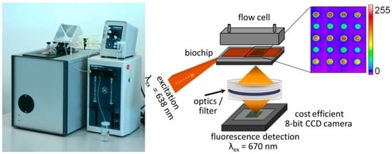- Schäferling, M.; Nagl, S. Optical technologies for the read out and quality control of DNA and protein microarrays. Anal. Bioanal. Chem. 2006, 385, 500–517. [Google Scholar] [CrossRef] [PubMed]