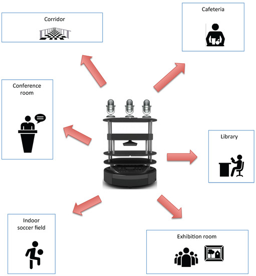 - Yamamoto, S.; Valin, J.M.; Nakadai, K.; Rouat, J.; Michaud, F.; Ogata, T.; Okuno, H.G. Enhanced robot speech recognition based on microphone array source separation and missing feature theory. In Proceedings of the 2005 IEEE International Conference on Robotics and Automation (ICRA 2005), Barcelona, Spain, 18–22 April 2005; pp. 1477–1482.