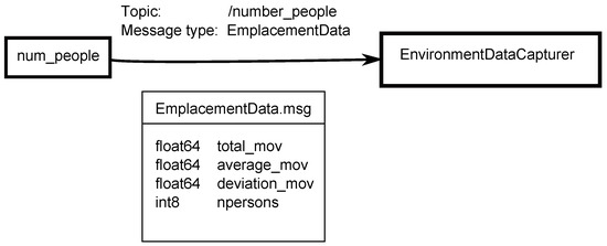- The num_people node: It is responsible for obtaining the information of the detected people and their movements in a given time interval. The sampling is performed when the robot is stationary to avoid the displacement of the robot to alter the sample. Another option may be to consider the movement of the robot to cancel it, but this idea has been rejected because it was not considered necessary and would increase the run time.