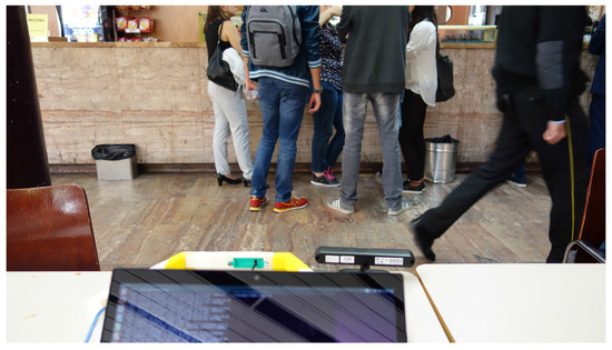 - Library vs. corridor:The second aim is to provide a difficult case to the system. The corridor can also be very quiet, and samples were taken at a time of low traffic. In addiction, there are people who just walked in the library in front of the sensor, which is the same action performed in the corridor. The last element that adds difficulty to this environment is identifying seated people in the library at some distance. This is difficult for the system due to sensory limitations. The Asus sensor is designed to work in a range of only three meters, and the people detection algorithm is focused on leg detection. Therefore, it is considered a challenging test. The result, however, is better than expected. Some of the twelve classifiers generated good results. One of them is shown in Table 3. Considering several good classifiers, the results are similar. The rate of success is shown in Table 4; if good classifiers were chosen, the rate is 91.5%. This is a high value; only 13.2% of corridor samples were classified as library. The sum of all classifiers, both good and bad ones, offers the result shown in Table 5. The overall success rate, including the worst classifiers obtained, is 86.9%.