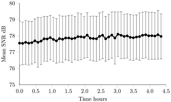 SNR per 100 frames (n = 363 measurements) over entire 4 h recording on Cardiff phantom.