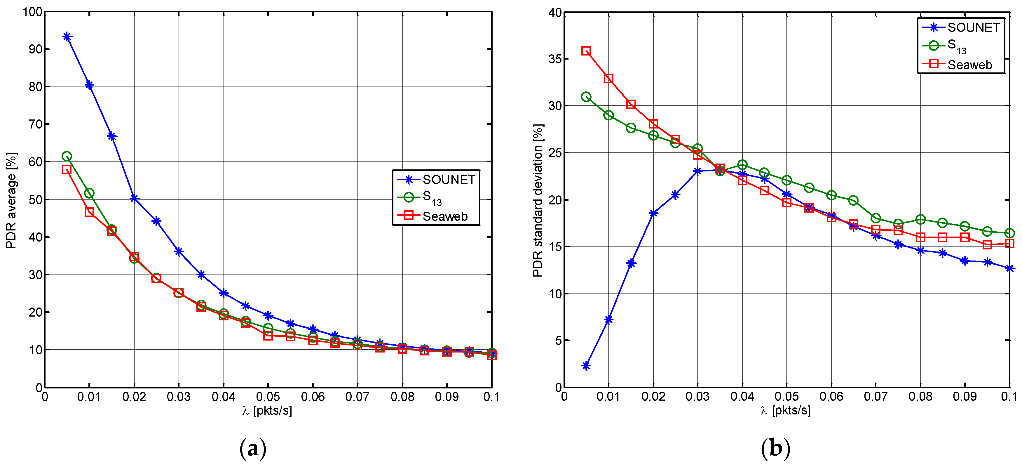 - Lee, J.-W.; Cho, H.-S. A Hybrid Sender- and Receiver-Initiated Protocol Scheme in Underwater Acoustic Sensor Networks. Sensors 2015, 15, 28052–28069. [Google Scholar] [CrossRef] [PubMed]