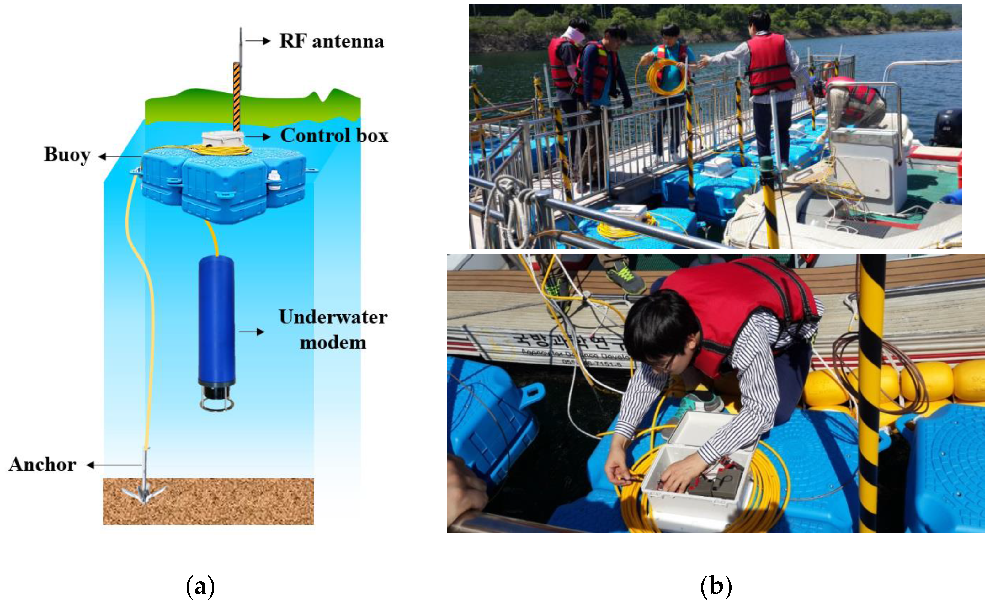 - Zhu, Y.; Zhou, Z.; Peng, Z.; Cui, J. “Busy Terminal Problem” and Implications in Underwater Acoustic Networks. In Proceedings of the 7th ACM International Conference on Underwater Networks and Systems 2012 (WUWNet 2012), Los Angeles, CA, USA, 5–6 November 2012.