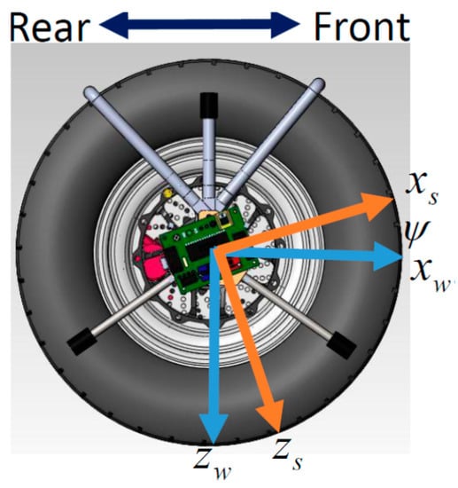 where and are the angle rotated from Coordinate V to Coordinate W and the angle rotated from Coordinate W to Coordinate S, respectively. Substituting Equation (2) into Equation (1), the coordinate transformation between Coordinates V and S become