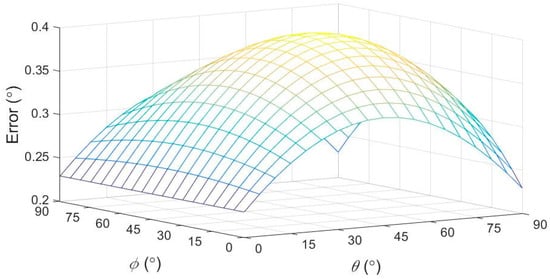 From Equation (22), the camber measuring errors due to the accelerometer resolutions for different and values in the ill conditions of the accelerometer measurements.