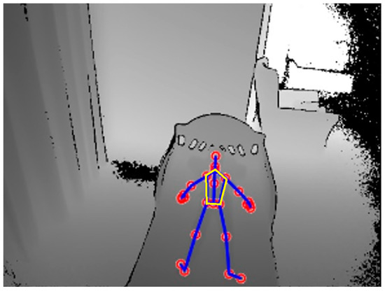 A Microsoft Kinect v2 sensor was used in this study to detect and track the movement of chest and abdomen caused by inhalation and exhalation. Based on depth information, the Kinect v2 sensor tracks movements of the human body by determining the position of 25 skeletal joints as shown in Figure 3.