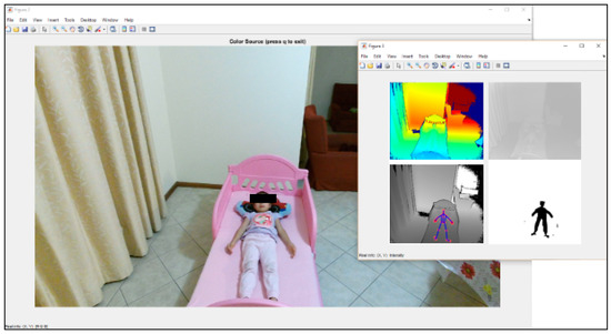 The capturing of RGB, depth, IR, skeleton tracking and body index from the Kinect v2 sensor is shown in Figure 4.