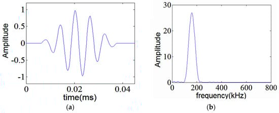 Five-cycle tone-burst at 160 kHz center frequency (a) and its spectrum (b).