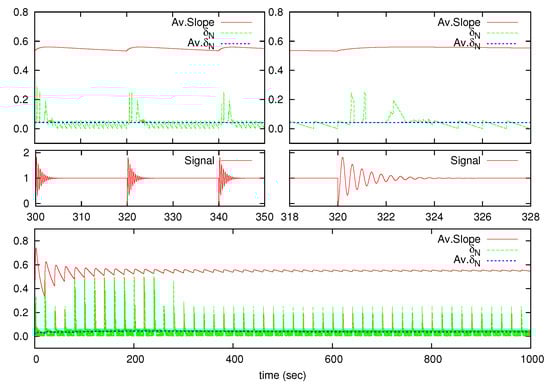 In the same way, at the end of the time-window (), from Equation (19), the value of may become too small if there are no messages sent (or too few). In this case, if the delta value is below the limit defined in Equation (11), it is also reset to .